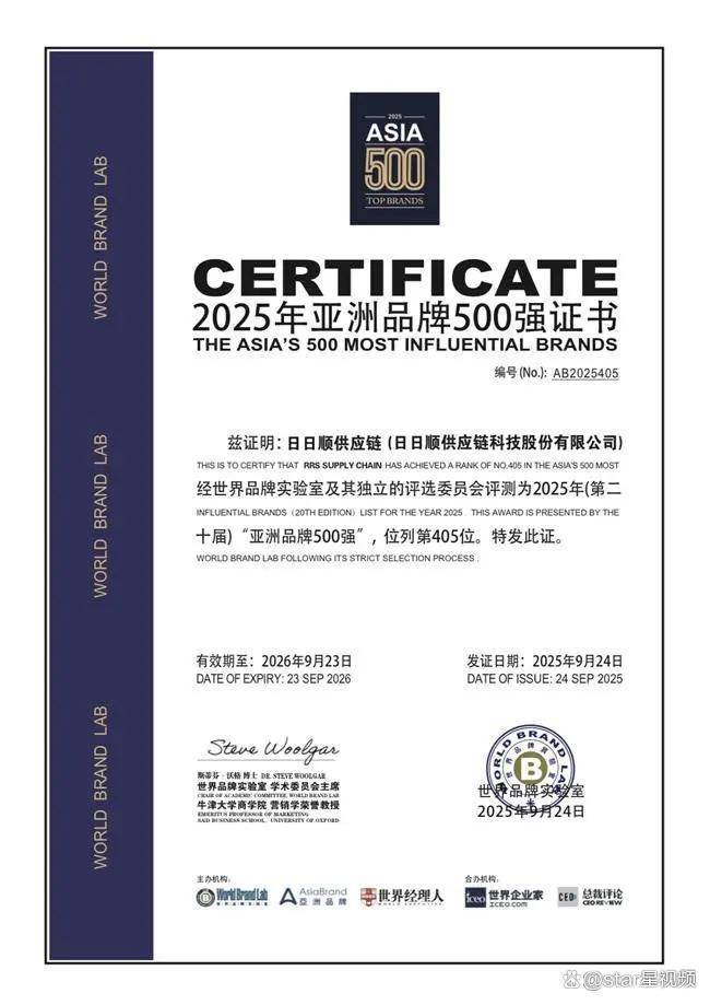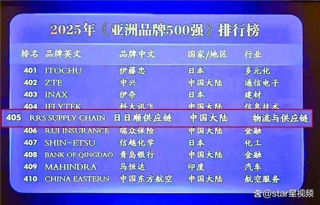 2025年9月24日,亚洲品牌大会在香港举办,会上世界品牌实验室(World Brand Lab)发布了本年度《亚洲品牌500强》报告。丰田、国家电网、三星、海尔名列前四,中国、日本和韩国是入选品牌最多的三个国家。其中,日日顺供应链作为物流与供应链领域唯一入选品牌,已连续第五年跻身该榜单,排名上升至第405位,显示出其持续提升的品牌影响力与行业认可度。
